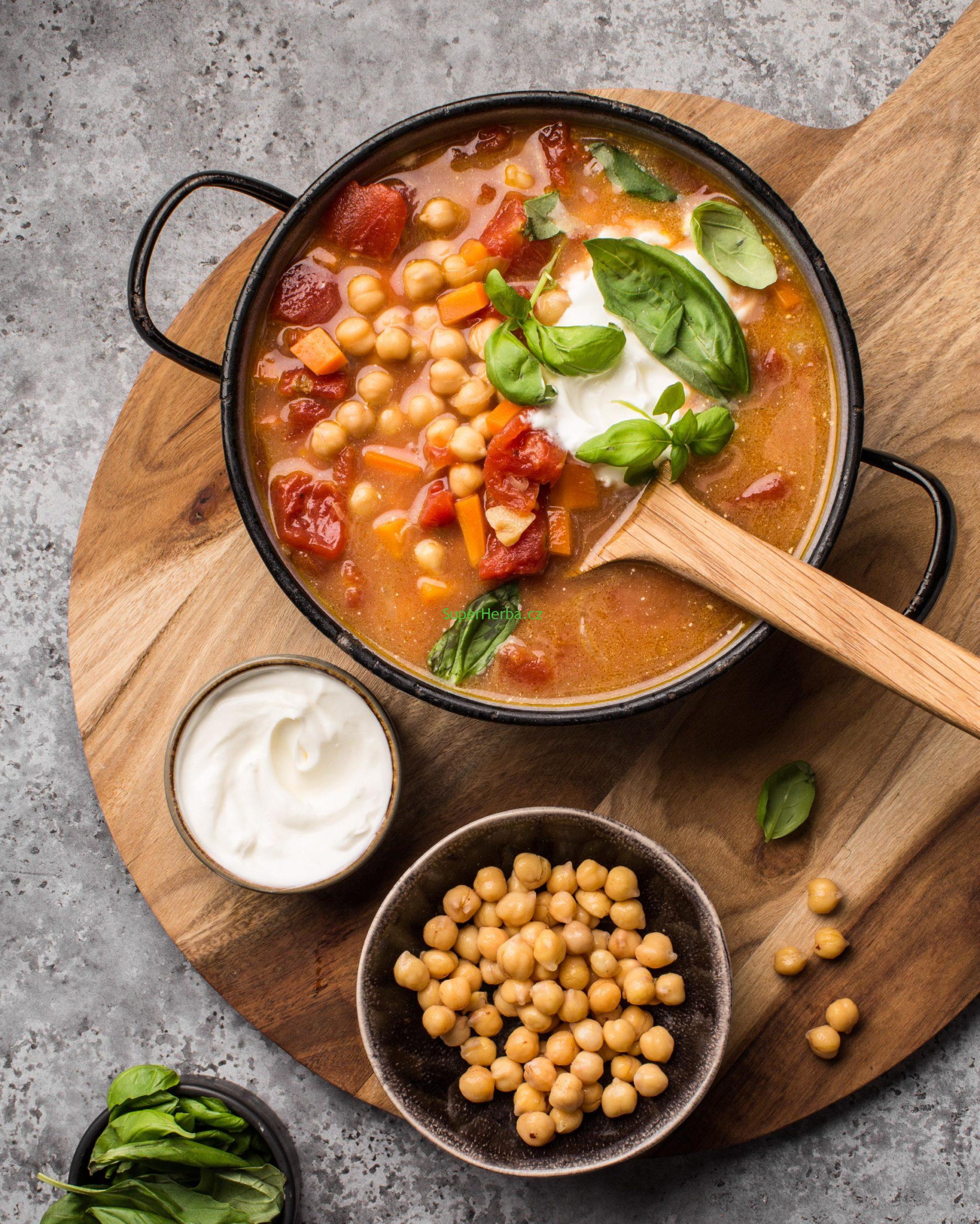 tamari a předvařenou cizrnu. Vše zamíchejte a nechte 10 minut povařit