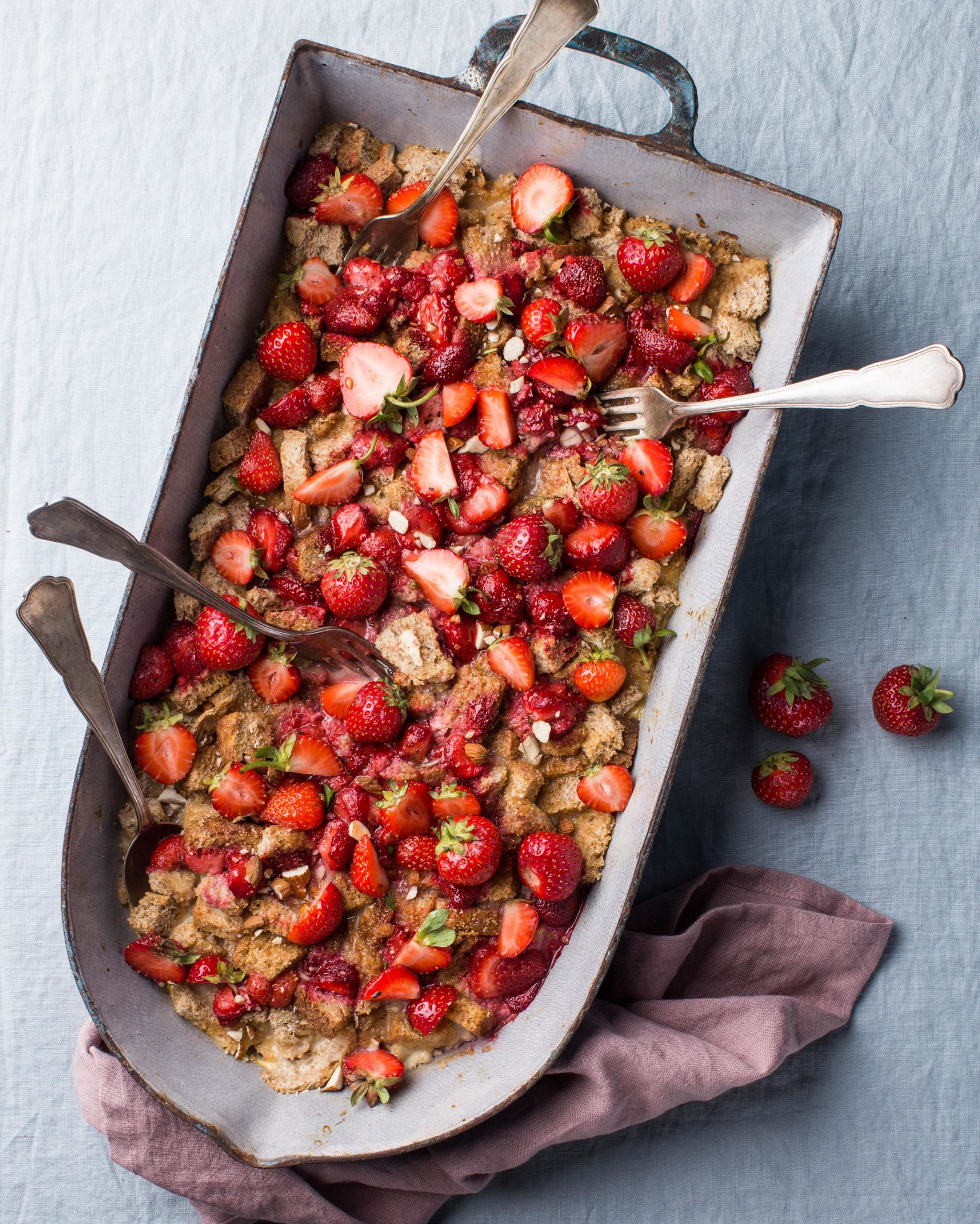 rovnoměrně zalijte chléb s jahodami a nechte 10 minut odležet, aby