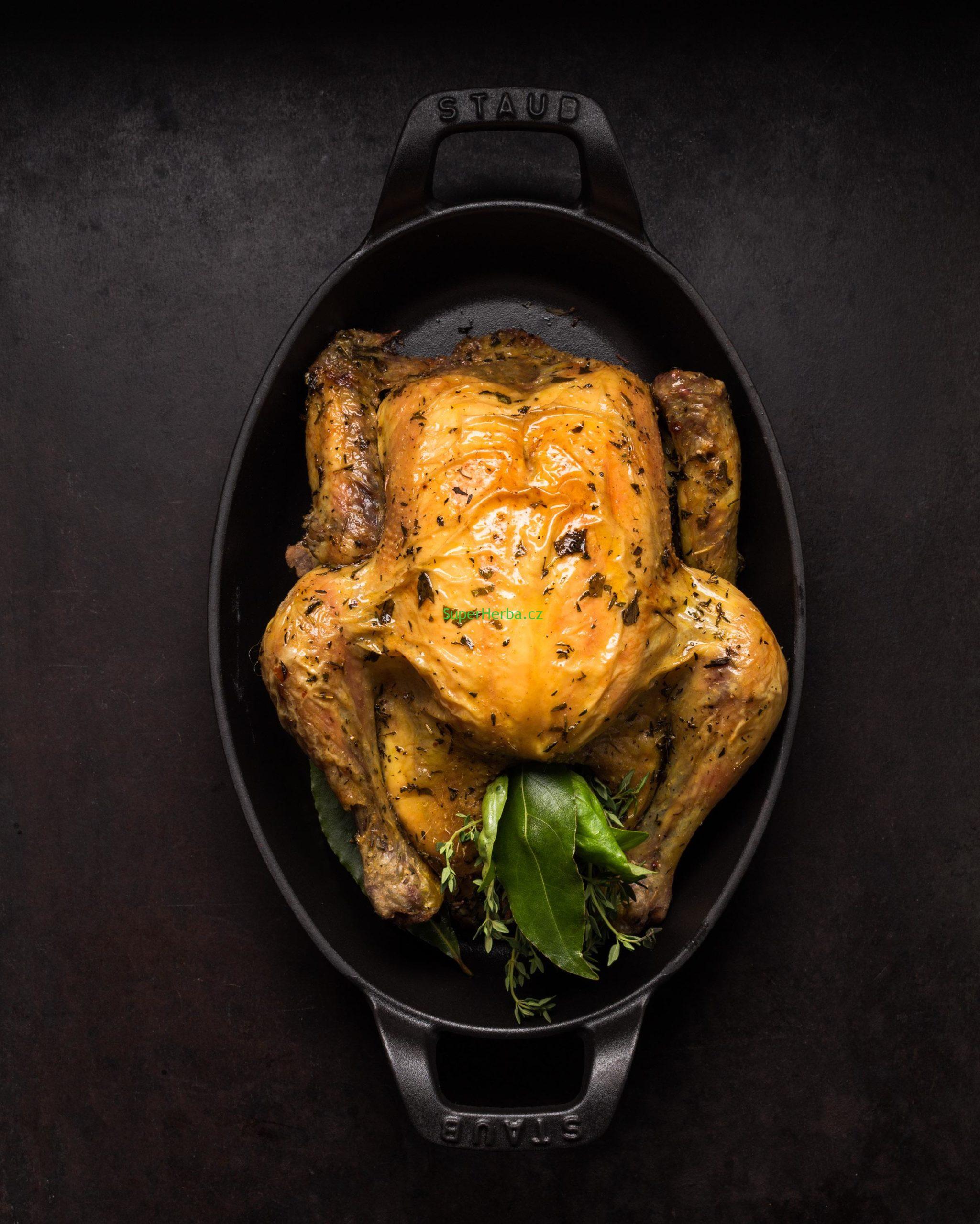 dejte i dovnitř společně s celými bobkovými listy. Kuře v odkrytém