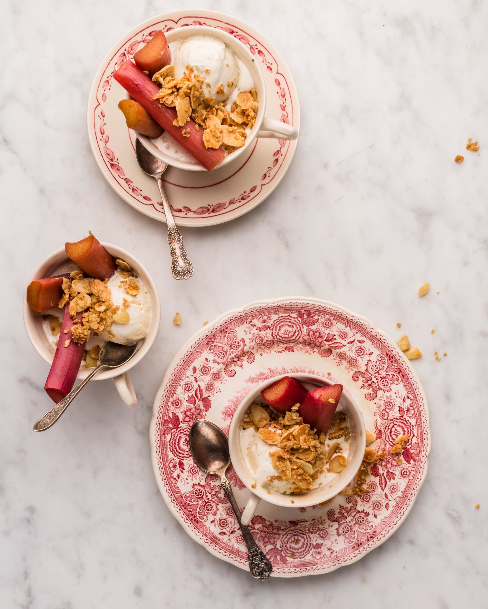 Mezi mícháním zmrzliny si připravte pečenou rebarboru a drobenku.